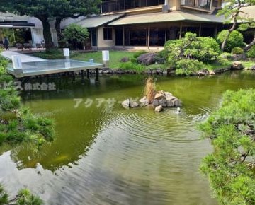 公園内の庭園池(水量約5,000m³)の透明度向上、藻類抑制