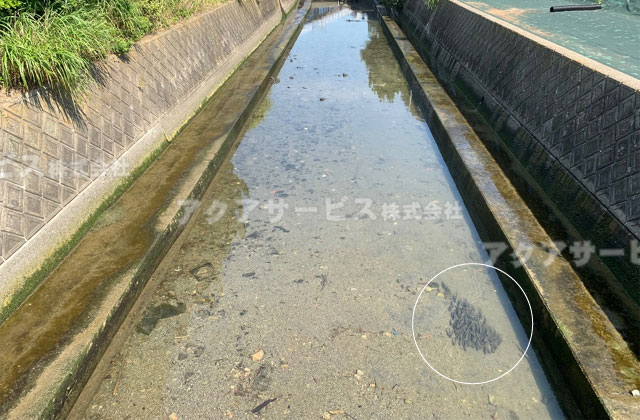 川底のヘドロがなくなり砂地がはっきりと見えています。ご担当者様はこの時点あたりで、悪臭がほぼなくなっていることを感じていたそうです。